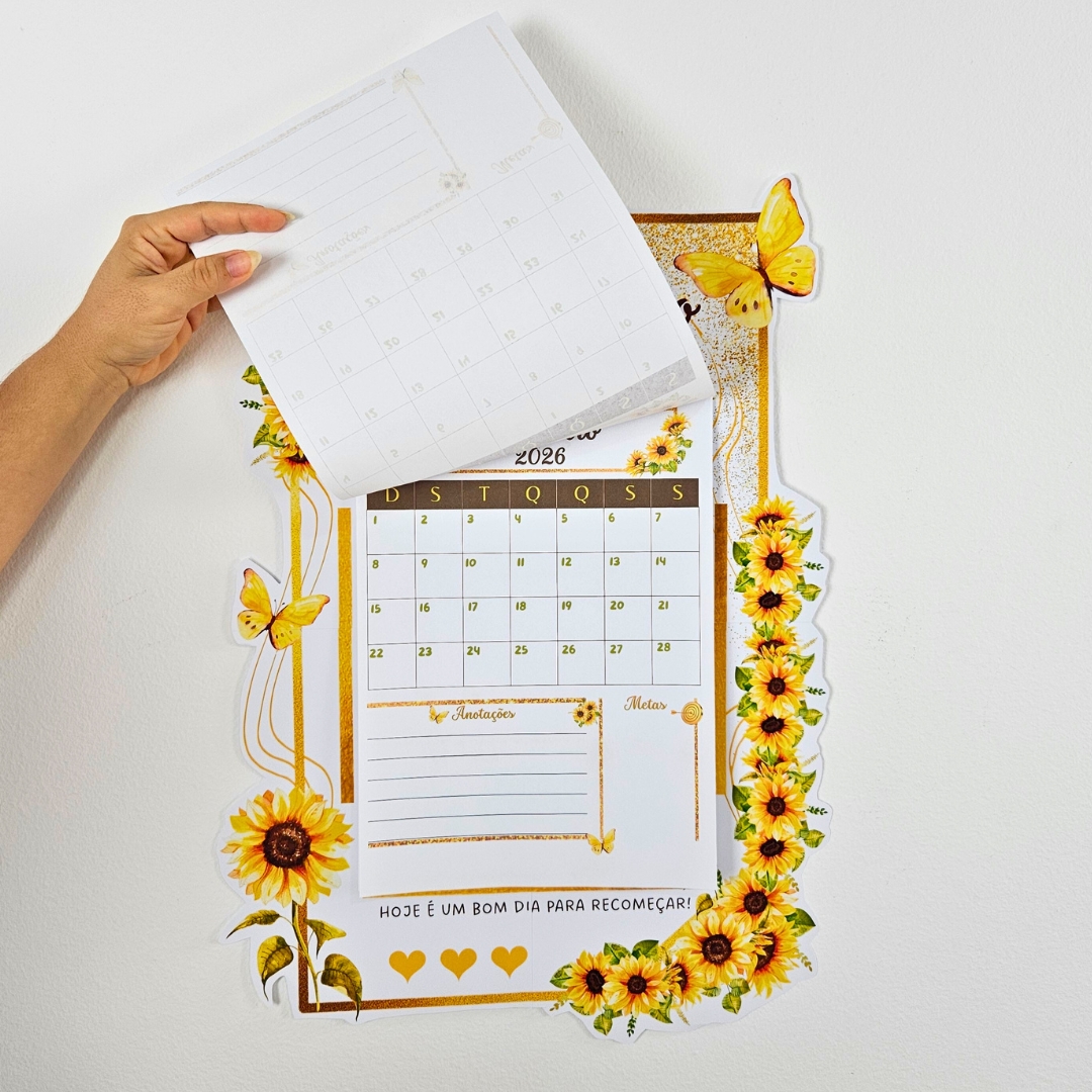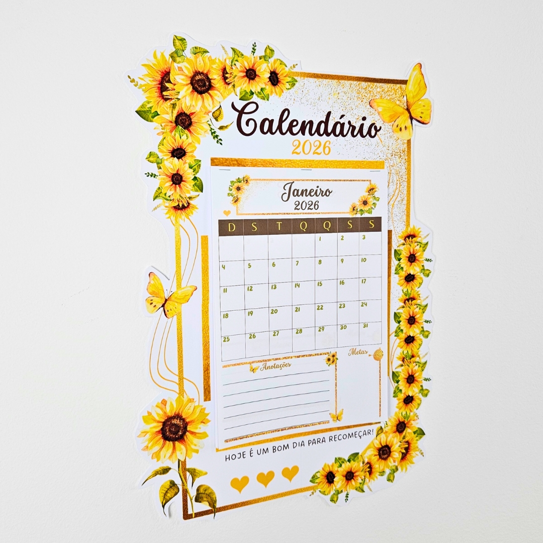 🔸Calendário 2026 com flores de girassol, perfeito para organizar sua rotina com beleza, leveza e praticidade.