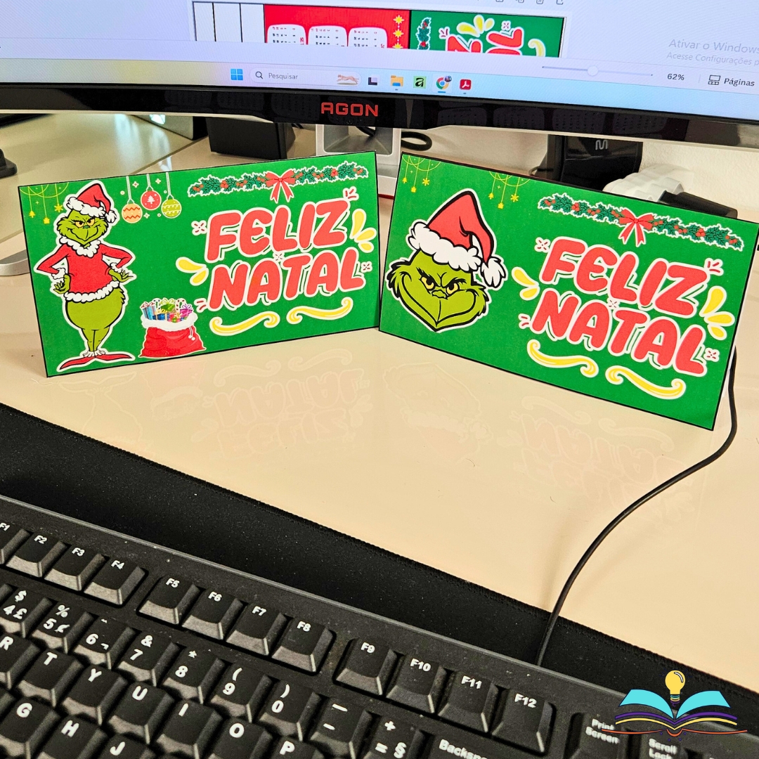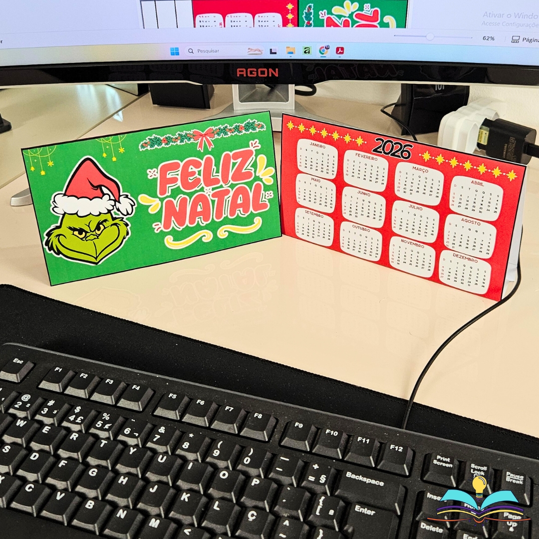 🔸Modelo de calendário de natal para pronta impressão e modelo editável no Canva para por fotos na moldura do personagem Grinch. O acesso está disponível no PDF 1 através do link anexado.