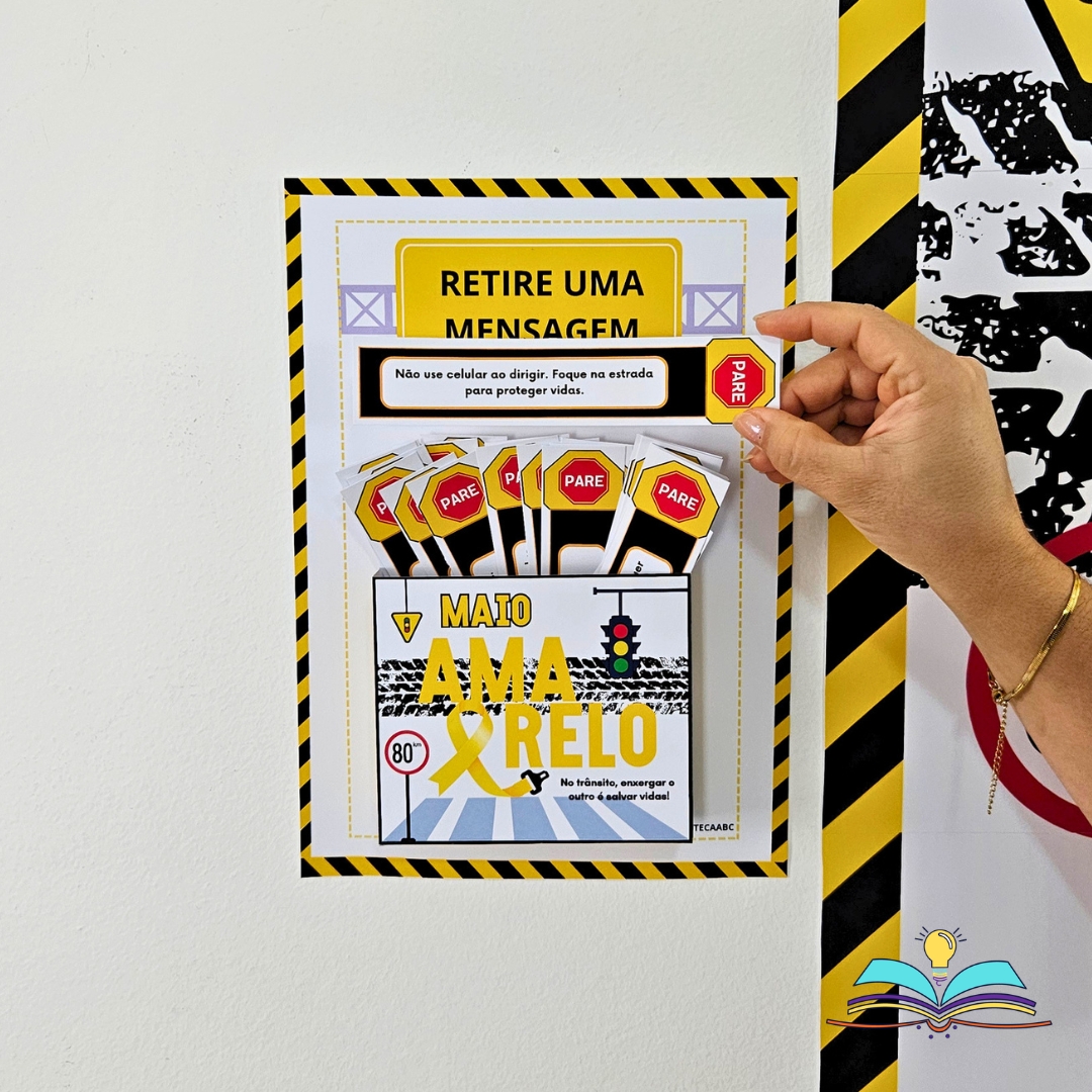 🔸Painel com o tema Maio Amarelo Segurança, conscientizando sobre trânsito responsável, atenção, prudência e preservação da vida diariamente.